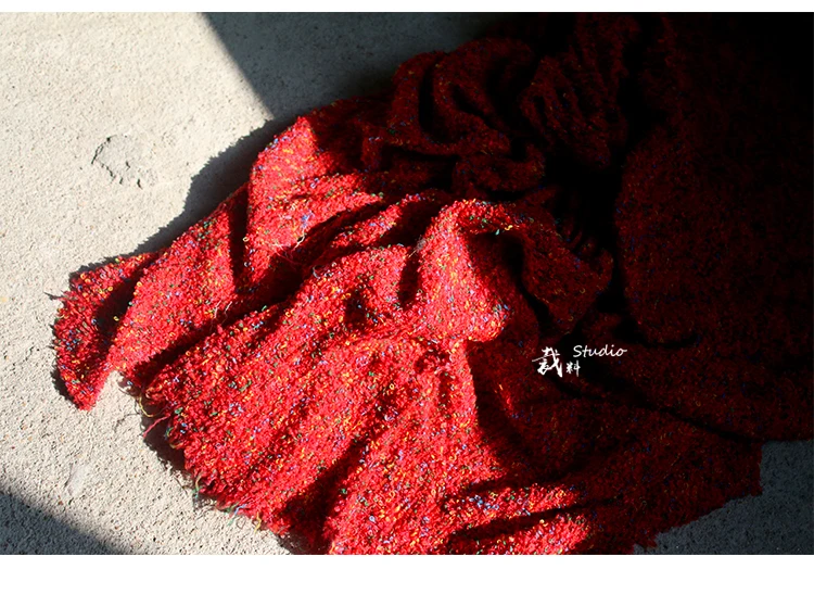 Красная вишневая тканая шерстяная ткань, прозрачная дизайнерская кружевная ткань, ткань для свадебного платья, тюль для пэчворка