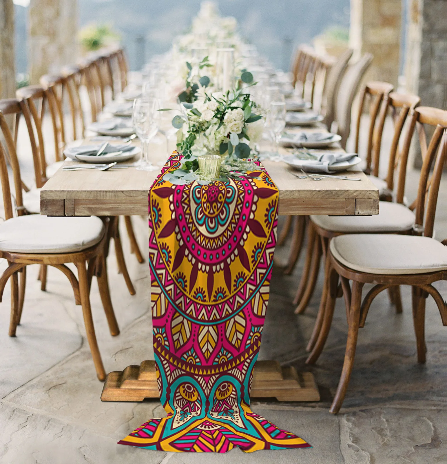 Красная прозрачная шифоновая настольная дорожка с рисунком мандалы для свадебной вечеринки, домашняя яркая кухонная марлевая настольная д...