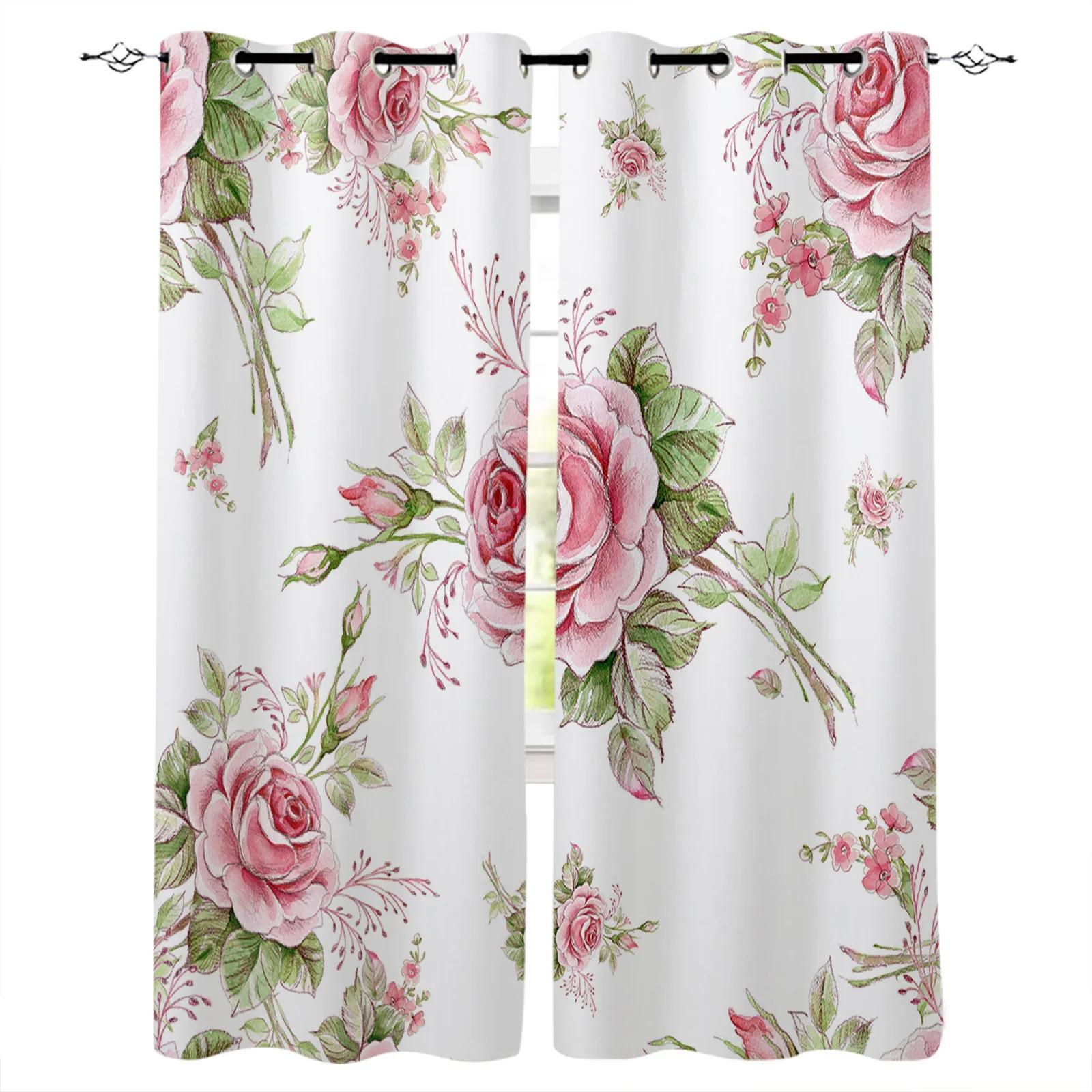 Красная роза, черная виноградная лоза, спиральные листья, принт, оконные шторы, роскошные европейские шторы для гостиной, балкона, отеля, кафе, шторы W65X60H(cm)X2Pcs&Hook