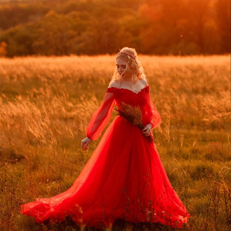 Красное вечернее платье с открытыми плечами 2020 ТРАПЕЦИЕВИДНОЕ ПЛАТЬЕ С Длинным Рукавом и шлейфом женские вечерние платья великолепные сек...
