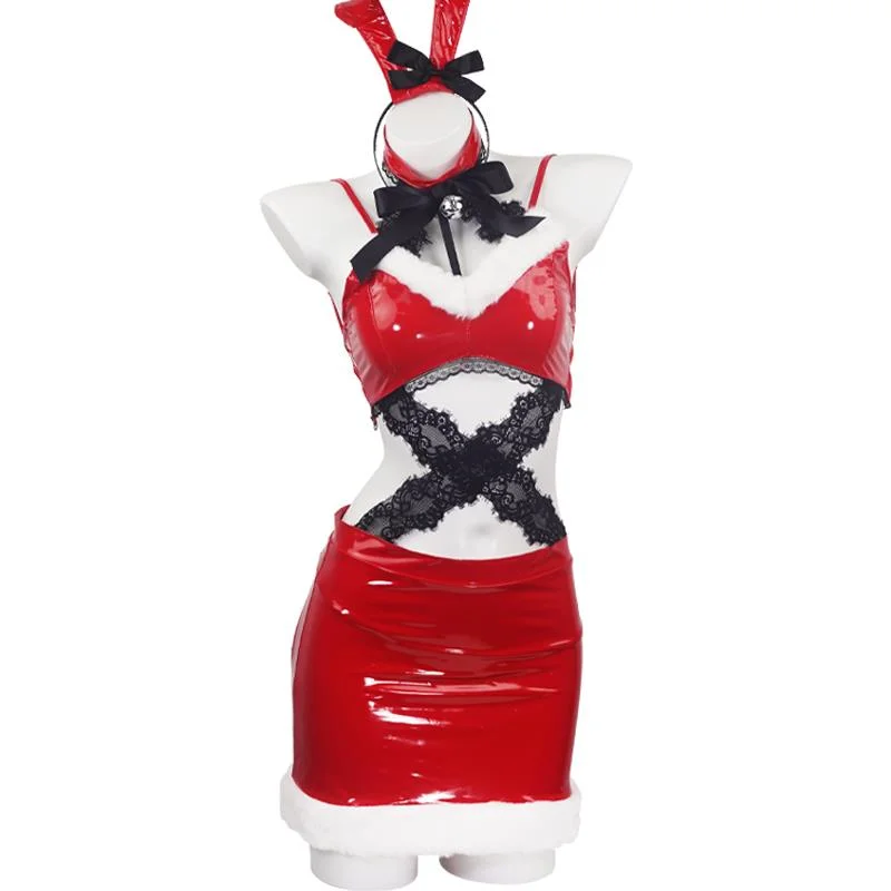 Красное пикантное женское белье для косплея, платье, Ажурное боди, Женское боди, Рождественская кожаная форма с открытой спиной в виде Санты...