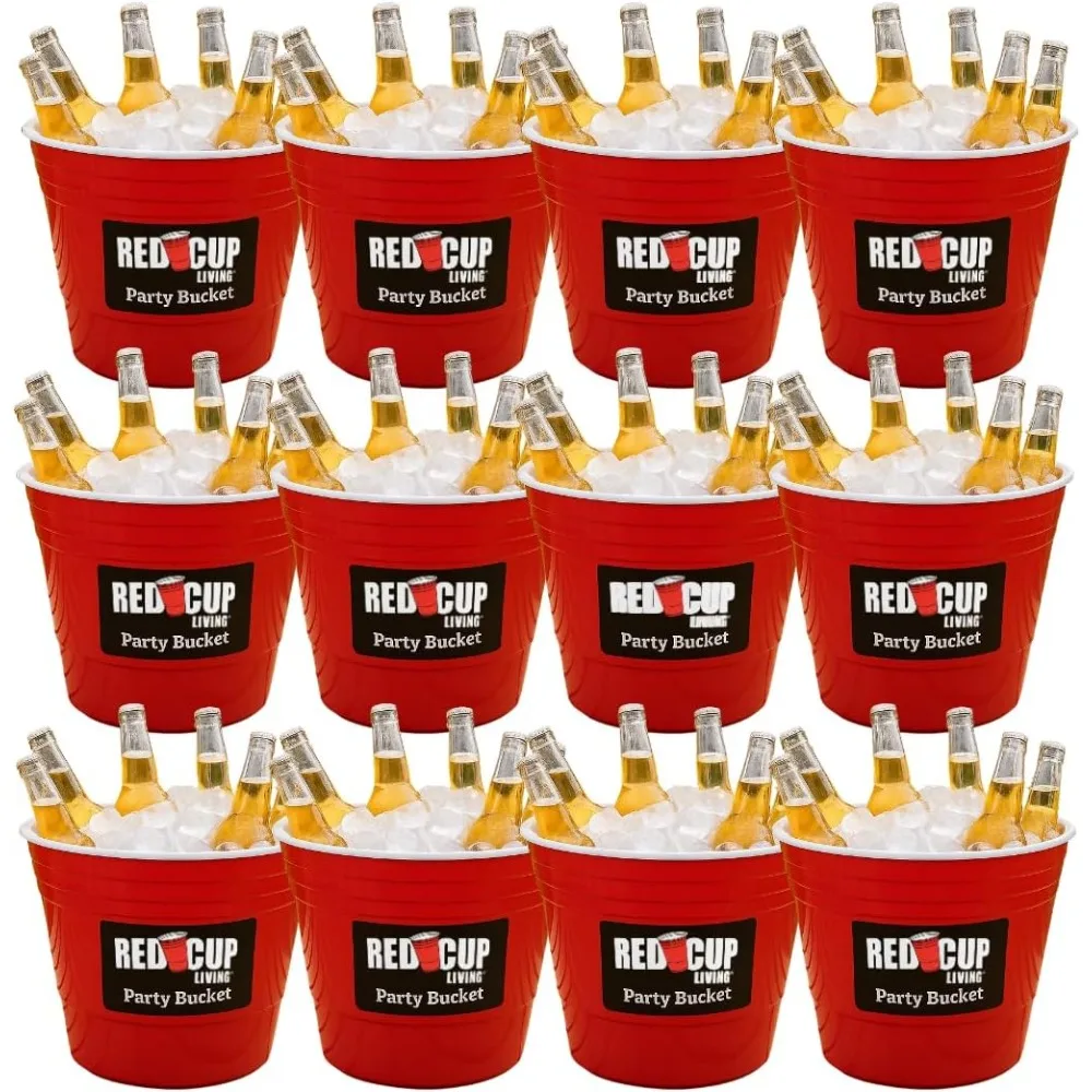 Красное пластиковое ведро для льда для вечеринок — большая ванна для напитков, охладитель вина, ведро для пива, держатель для напитков для баров в помещении и на открытом воздухе