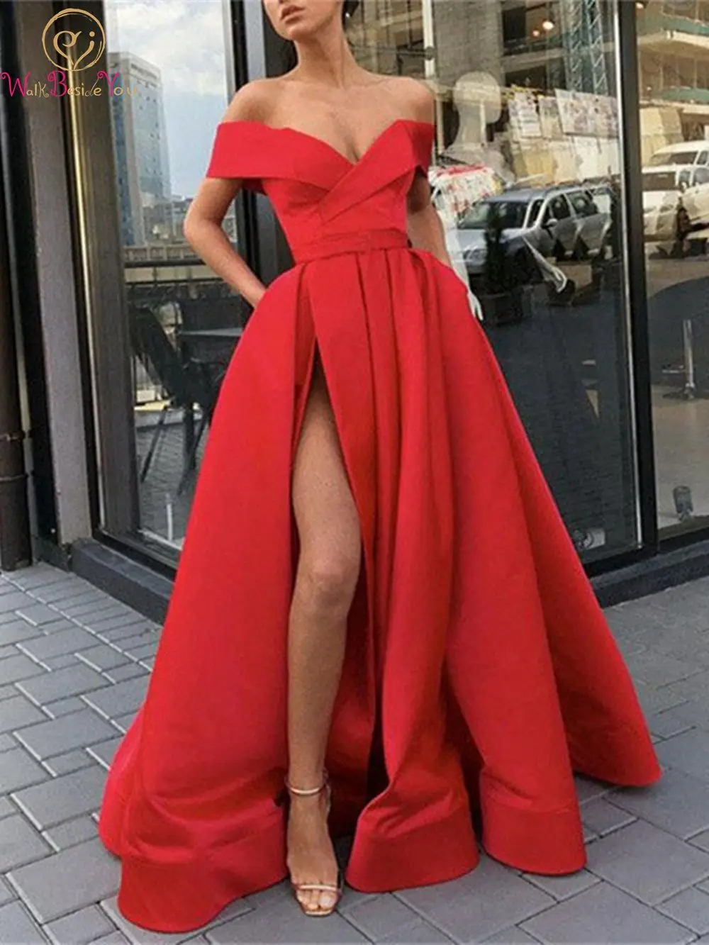 Красное/синее длинное вечернее платье-трапеция с разрезом, новинка 2021, платье с открытыми плечами и V-образным вырезом, элегантные платья для официальной вечеринки и выпускного вечера