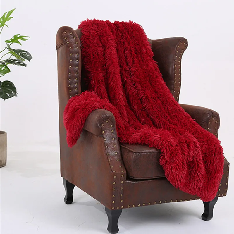 Красно-серое ворсовое Фланелевое длинное плюшевое одеяло для кровати, теплое мягкое пушистое меховое зимнее покрывало для дивана, офисное покрывало для отдыха, покрывало для домашних животных, одеяло для кошек и собак