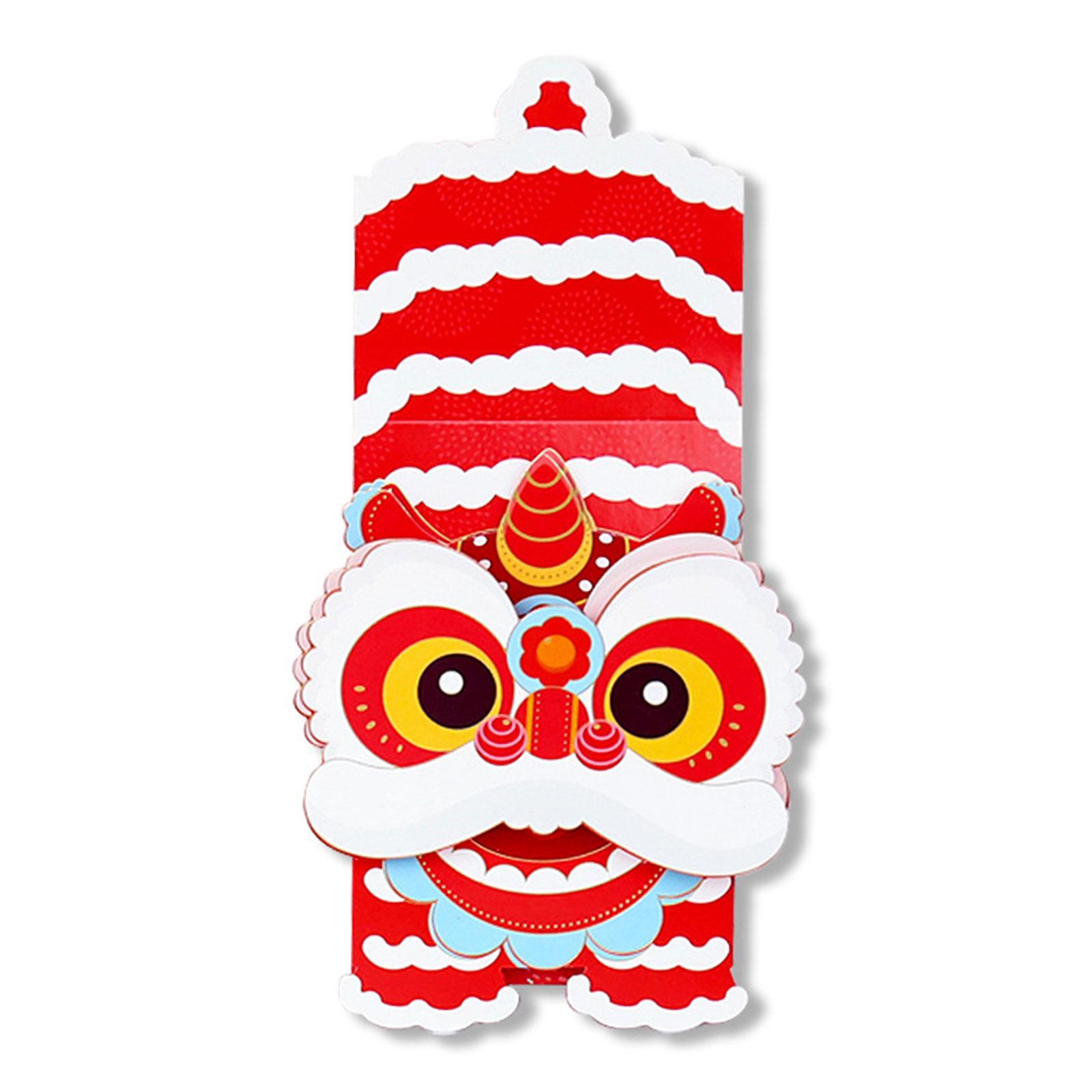 Красные конверты на китайский Новый год. Привлекающие внимание красные конверты в китайском стиле с головой льва для праздничного подарка. A