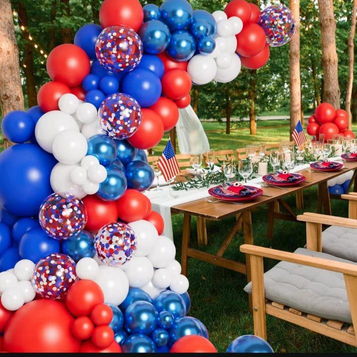 Красный, Белый И Синий Набор Цепи Арки Гирлянды из Шаров Парусная Вечеринка в честь Дня Рождения Декорация Сцены Дня Независимости Set as shown