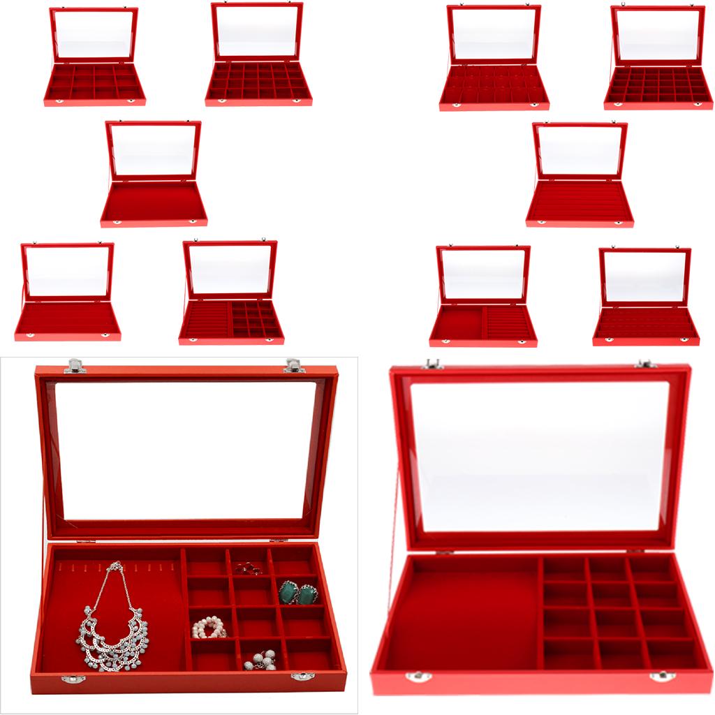 Красный футляр для хранения держателя подноса для ювелирных изделий с прорезями для крышек и вставок для ожерелья as described