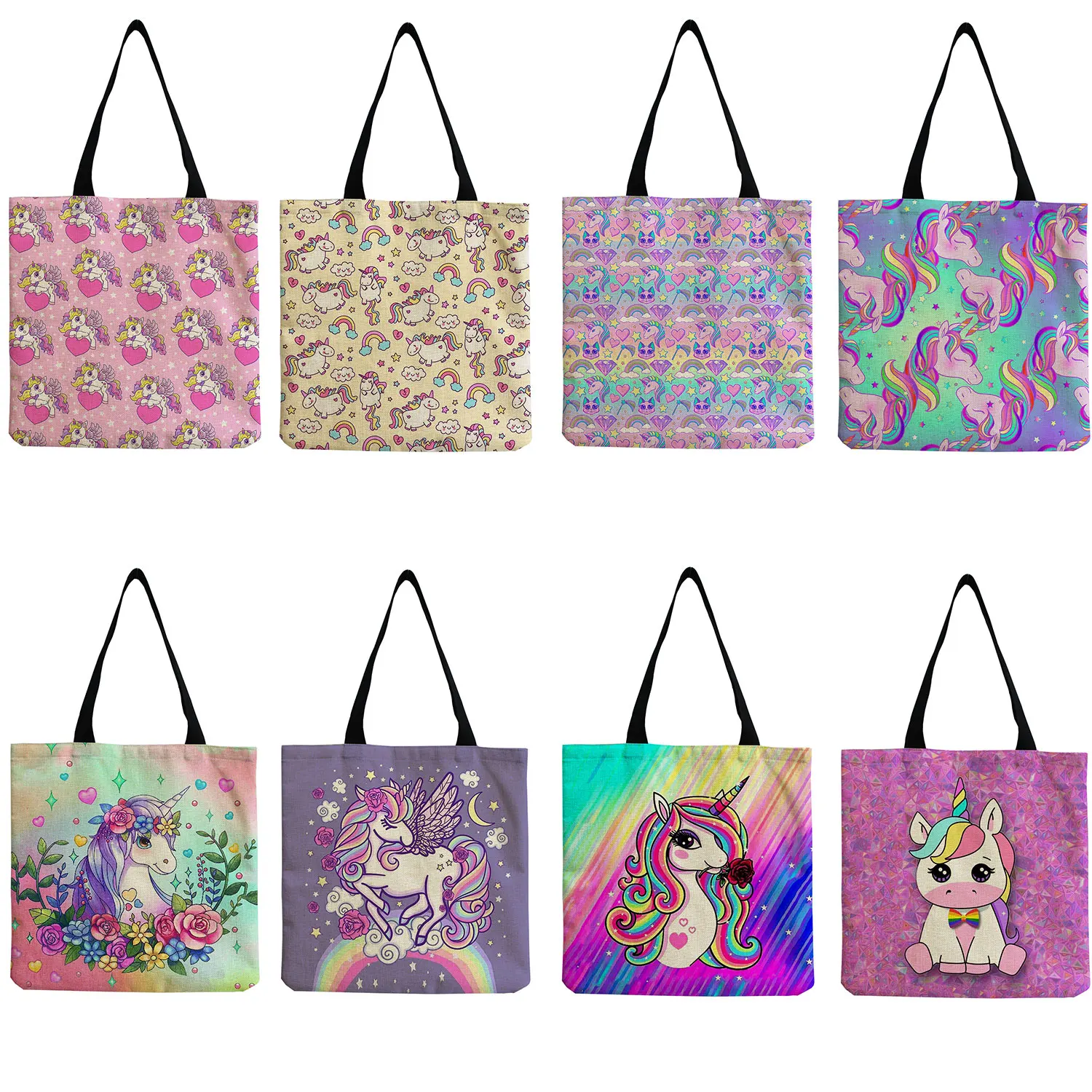 Красочная Сумка-тоут с принтом единорога, Экологически чистая многоразовая практичная сумка для покупок, уличные дорожные сумки, мультяшная Милая женская сумка через плечо