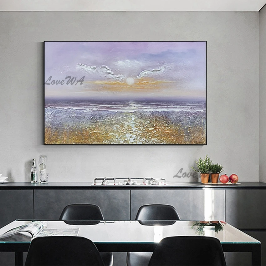 Красочная картина маслом «Восход солнца на море», красивое домашнее украшение большого размера, абстрактная картина для гостиной, холст бе...