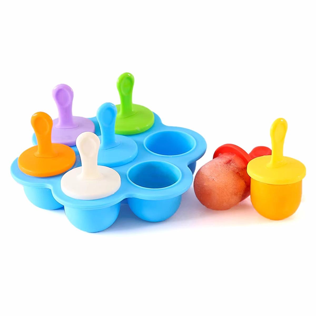 Красочная форма для эскимо с 7 ячейками, силиконовая форма для мороженого, DIY форма для фруктового шейка с ручками и поддоном, пищевой класс для семейного развлечения