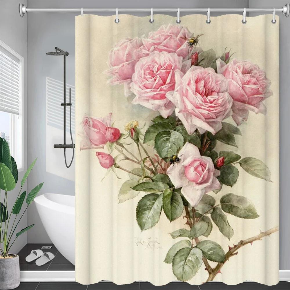 Красочные Тюльпаны Розы Цветы Деревья Занавеска для Душа Занавески для Ванной Природа Цветок Водонепроницаемая Полиэстеровая Ткань Домашний Декор для Ванны 150x180cm-60x70in