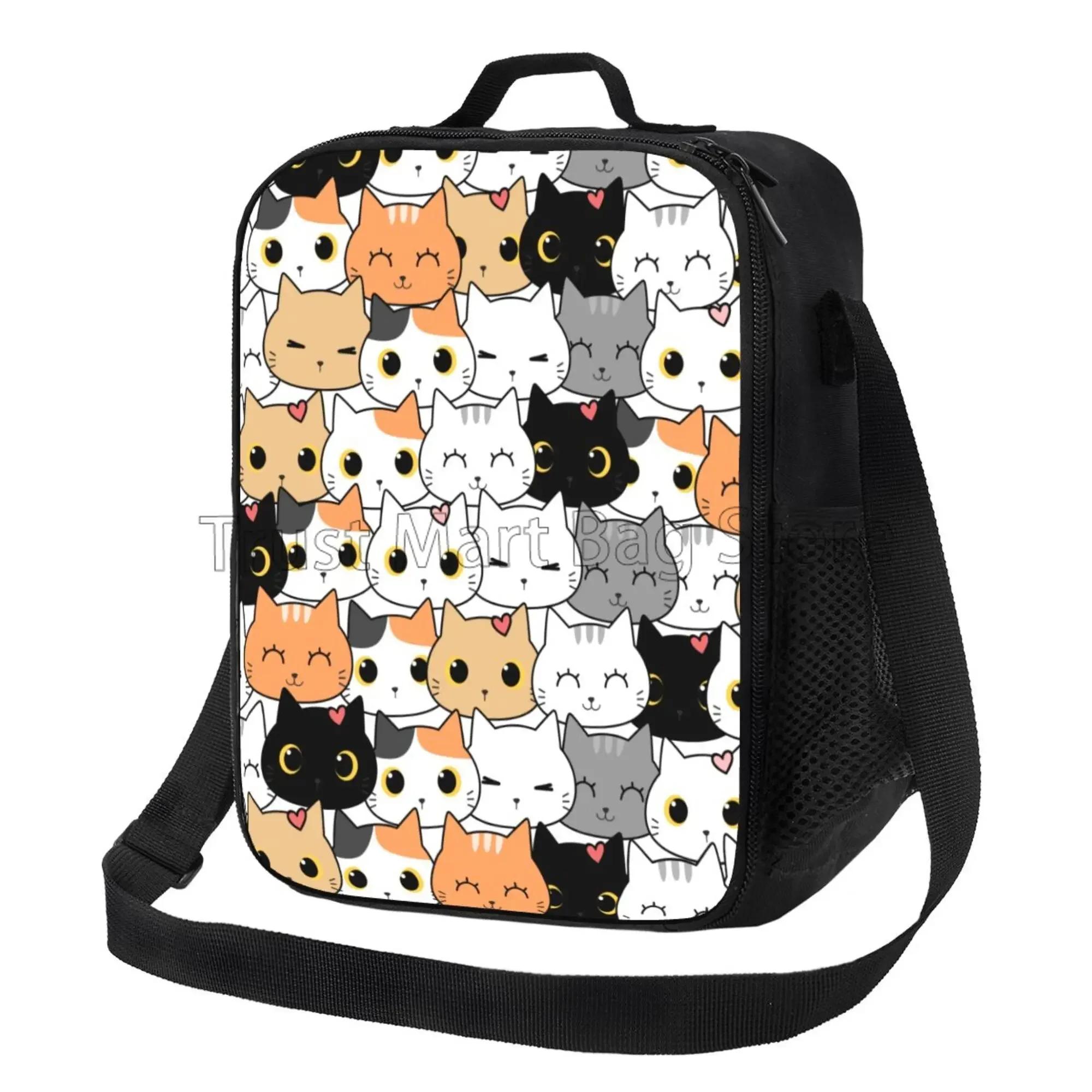 Красочные кошачьи головы с яркими глазами многоразовая сумка для ланча герметичная морозостойкая изолированная охлаждающая коробка для ланча для мальчиков и девочек в школу 26.5x20x11.5CM небесно-голубой