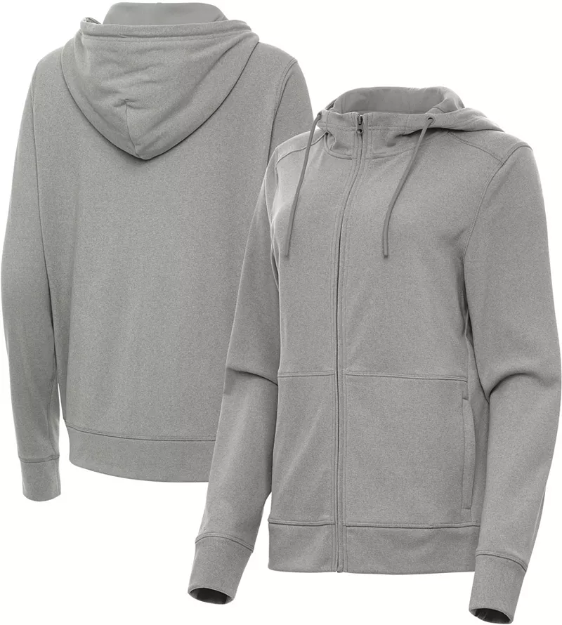 Женская толстовка для гольфа с молнией во всю длину Antigua Seeker, цвет Grey Heather