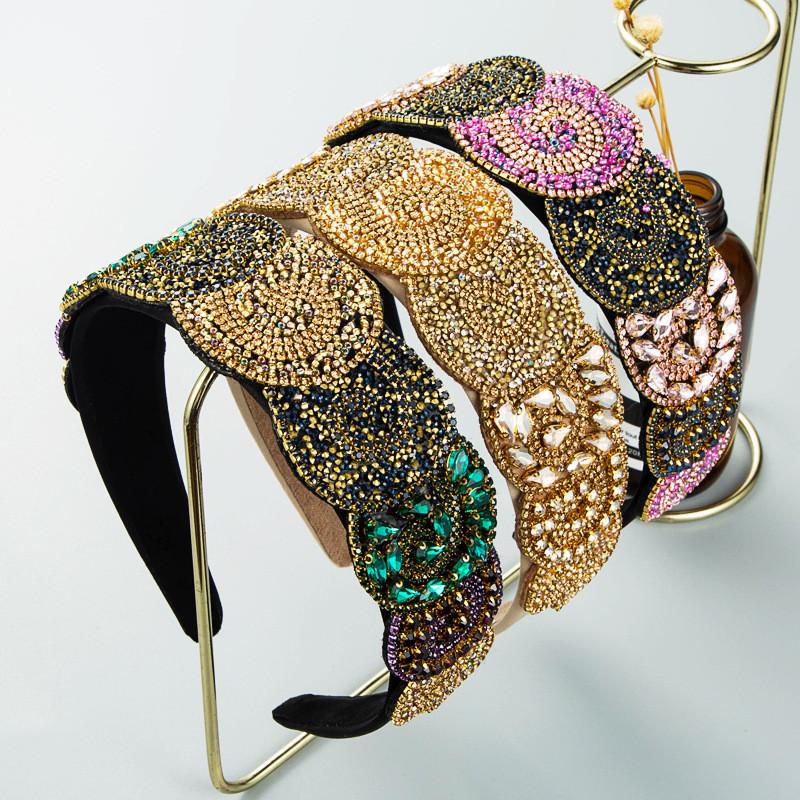 Красочные украшения для волос со стразами, вечерние аксессуары для волос, роскошная повязка на голову с широкими полями 5*38cm зелёный