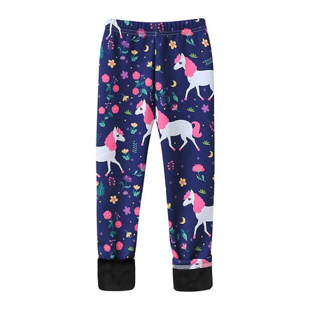 KVMeteor Girls Fleece Lined Winter Warm Leggings Print Long Elastic Waist Pants