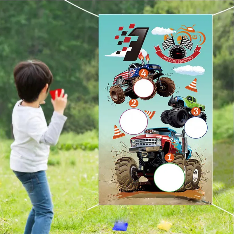 Красочные флаги грузовика 75x135 см, флажки для мальчиков на день рождения, баннеры, подвесные фоны для мишени, брезентовый мешок, брошь, игра, в...