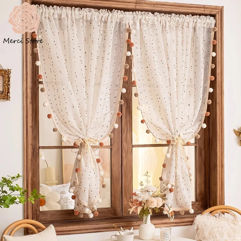 Красочные хлопковые льняные шторы с сахарной фасолью для детской комнаты, светильник в стиле принцессы для спальни, прозрачная марлевая дверная драпировка с шариком для волос