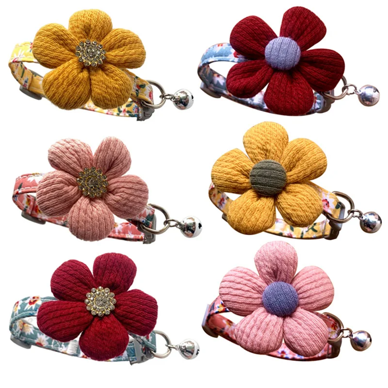 Красочный цветок, яркий ошейник для собак и кошек с колокольчиком, цветок, котенок, ожерелье для щенка, кошка