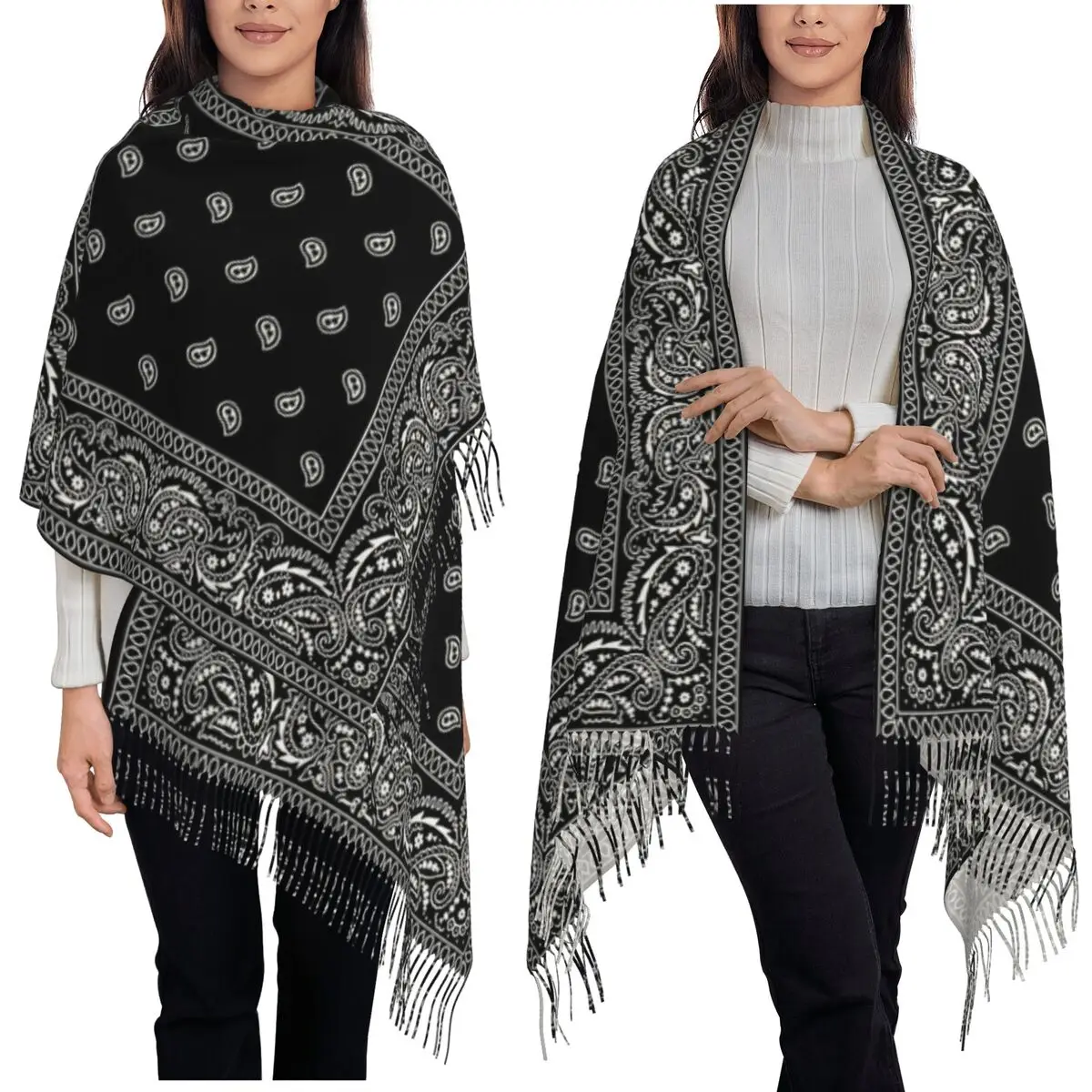 Красочный шарф с черным узором пейсли, шарфы с кисточками, женские мягкие теплые шали и накидки, длинная осенне-зимняя шаль