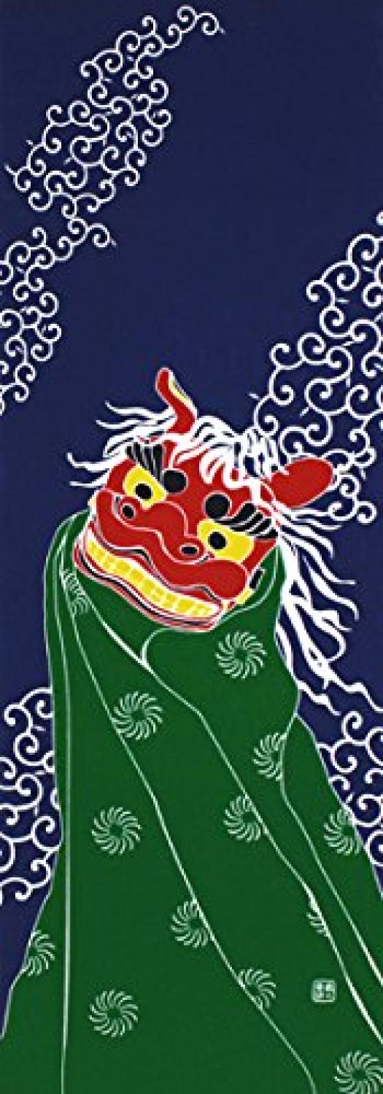 Крашение полотенца для рук Анбо, аутентичный крашеный хлопок Токуока, сделано в Японии, 35 см x 100 см, «Танец льва», 100%