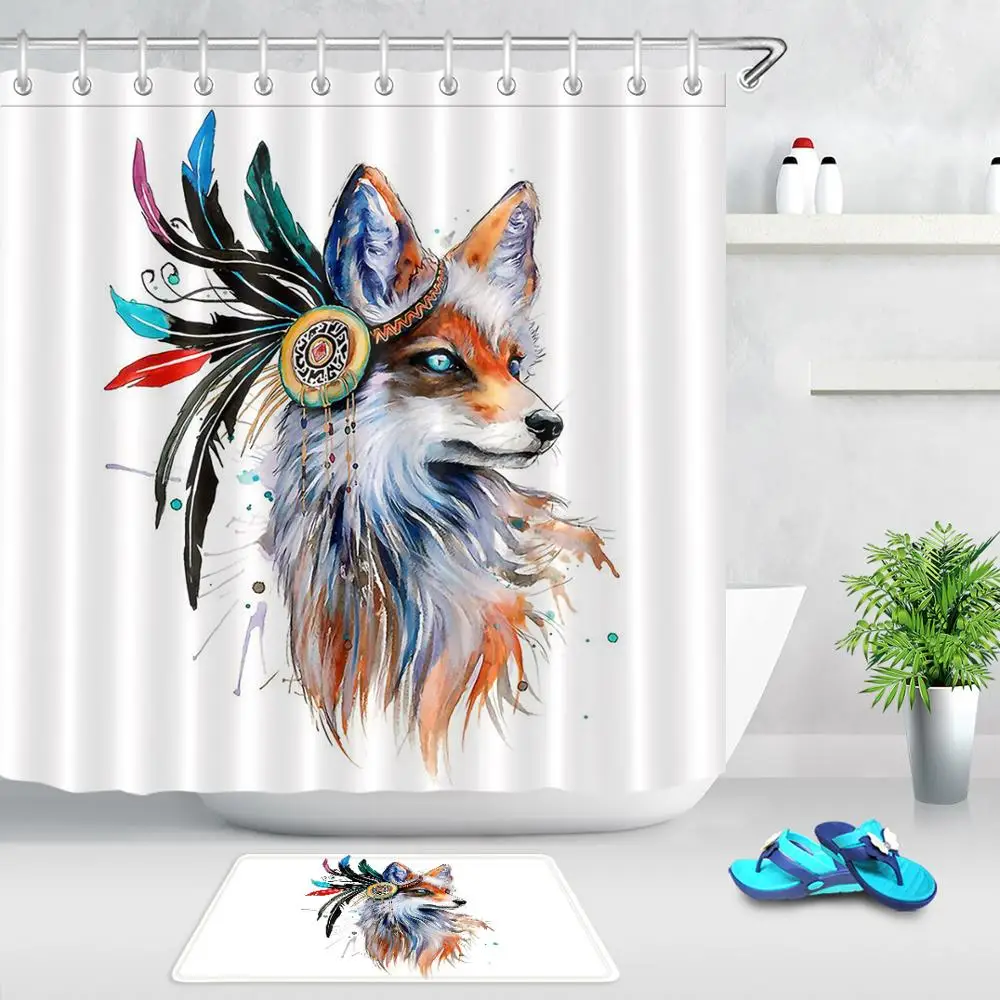 Креативная Акварельная занавеска для душа с волком, животные, этническое племя, перо, современные шторы для спальни, занавеска для ванны из ...