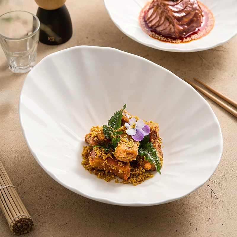 Креативная белая наклонная салатница, блюдо в стиле вестерн, простая керамическая глубокая тарелка, нерегулярная посуда для отеля, тарелка, бытовая кухонная утварь