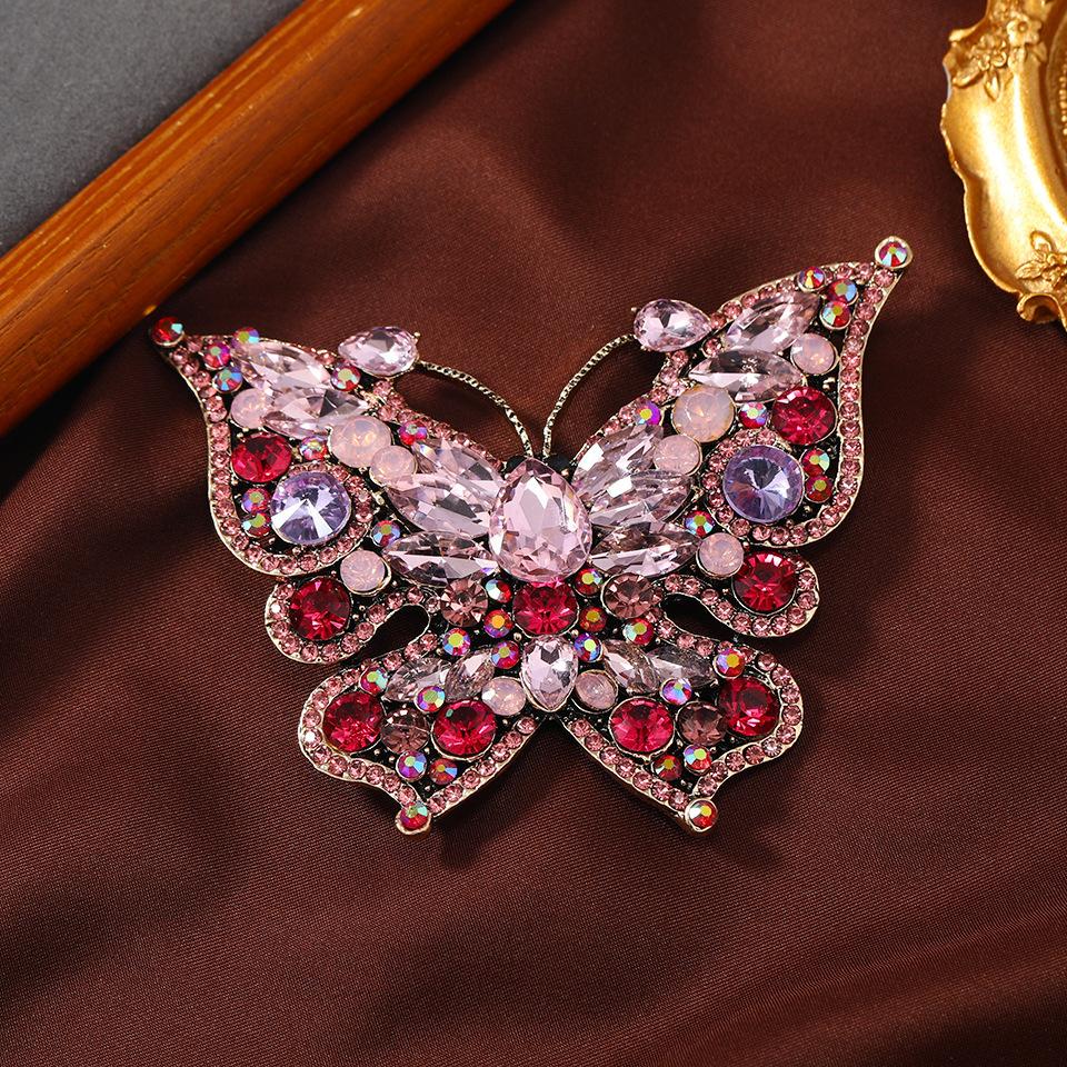 Креативная большая брошь в виде бабочки со стразами и кристаллами в стиле ретро, брошь в виде насекомого, аксессуары для одежды розовый