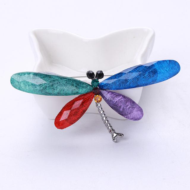 Креативная брошь в виде насекомого-стрекозы, мультяшная хрустальная брошь, универсальная, для пальто, аксессуаров, корсажа разноцветный