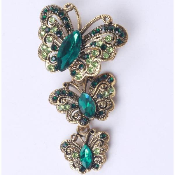 Креативная брошь в стиле ретро «Три бабочки» из сплава с кристаллами и бриллиантами, куртка с темпераментом зелёный