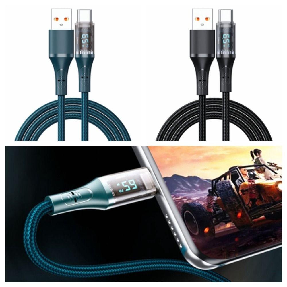 Weave PD 66W USB C Cable LED Digital Display Type C Fast Charging Cable Durable Data Transfer зелёный