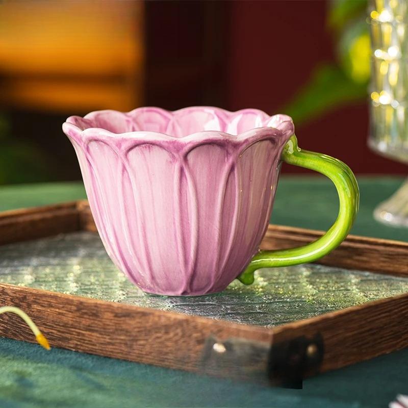 Креативная керамическая кофейная чашка Нежная кружка с цветком Английский послеобеденный чай Чашка для чая и кофе с цветком камелии Большой объем Чашка для завтрака 401-500ml розовый