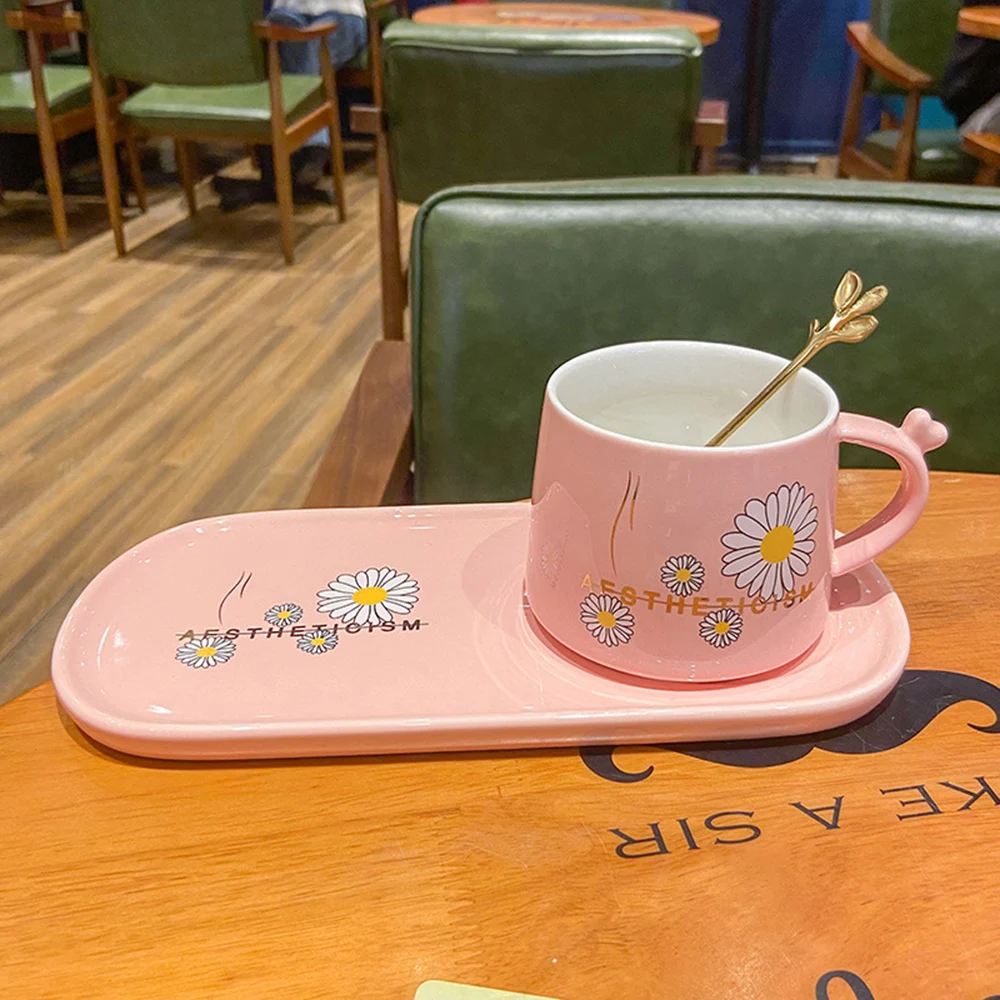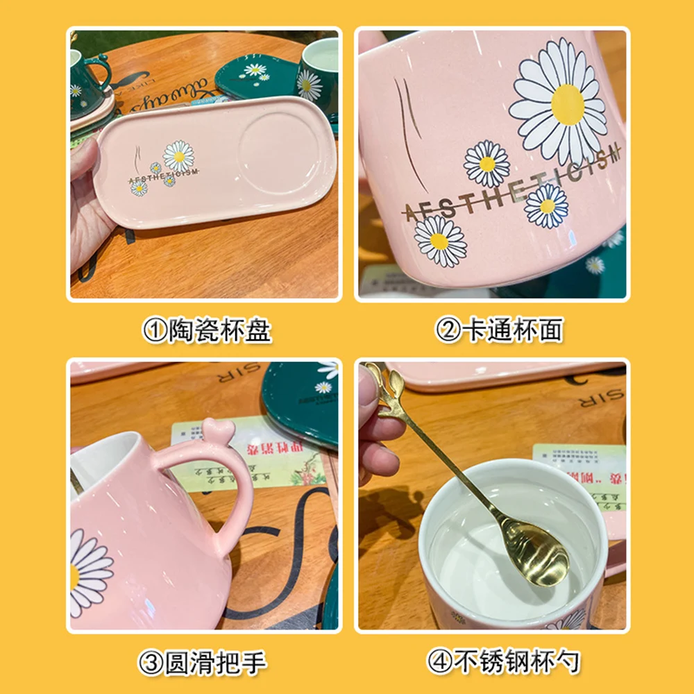 Креативная керамическая кофейная чашка и блюдце в японском стиле с маленькими маргаритками, керамические кружки для ресторана, послеобеде...