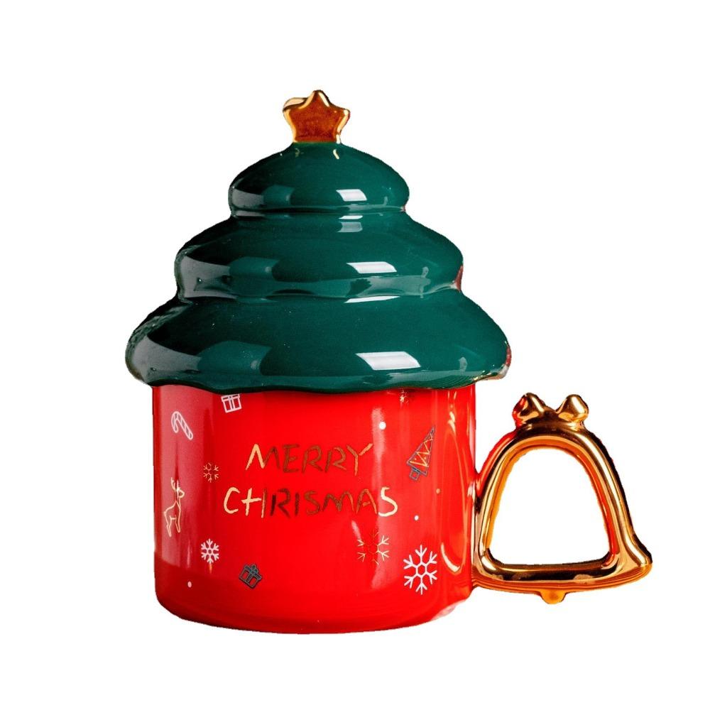 Креативная керамическая кружка в виде елки с крышкой, ценный рождественский подарок, милая, для пары, офисная, чашка для послеобеденного чая 310ml
