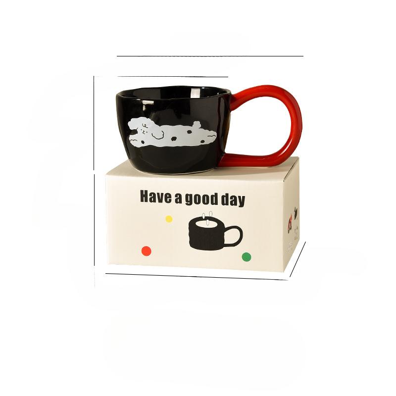 Креативная контрастная цветная кружка с большими ушками, бытовая керамическая кружка, кружка высокой ценности, мультяшная керамическая кружка с щенком, парная кружка для воды 340ml