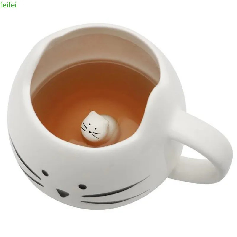 Креативная кофейная кружка с котом, кофейные чашки, 3D белая черная Милая кошка в нижней части, забавная молочная чашка, столовая посуда, нови...
