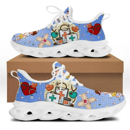 White Nursing Shoes for Women Cute Cartoon Nurse Women Sneakers Brand Design Doctor Medical Printed Light Lace-up Flats Zapatos