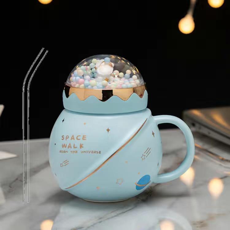 Креативная кружка «Планета», сферическая керамическая чашка для воды, кофейная чашка, чашка для молока с крышкой, чашка для воды, индивидуальный подарок синий