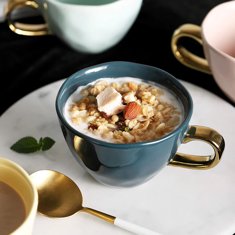 Креативная кружка для завтрака, керамическая чашка неправильной формы, простая однотонная позолоченная ручка, подарки для дома и офиса, коф...