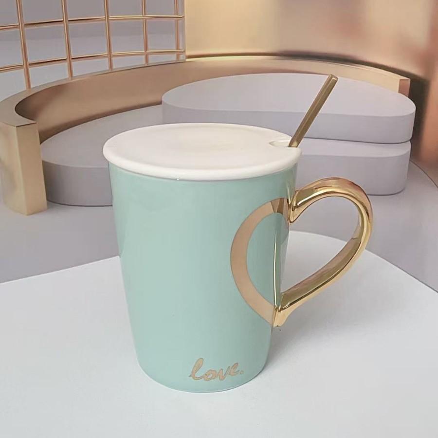 Креативная кружка для кофе «Любовь» для девочек, керамическая чашка с крышкой и ложкой, бытовая чашка для воды, сувенирные подарки, керамическая чашка 400ml