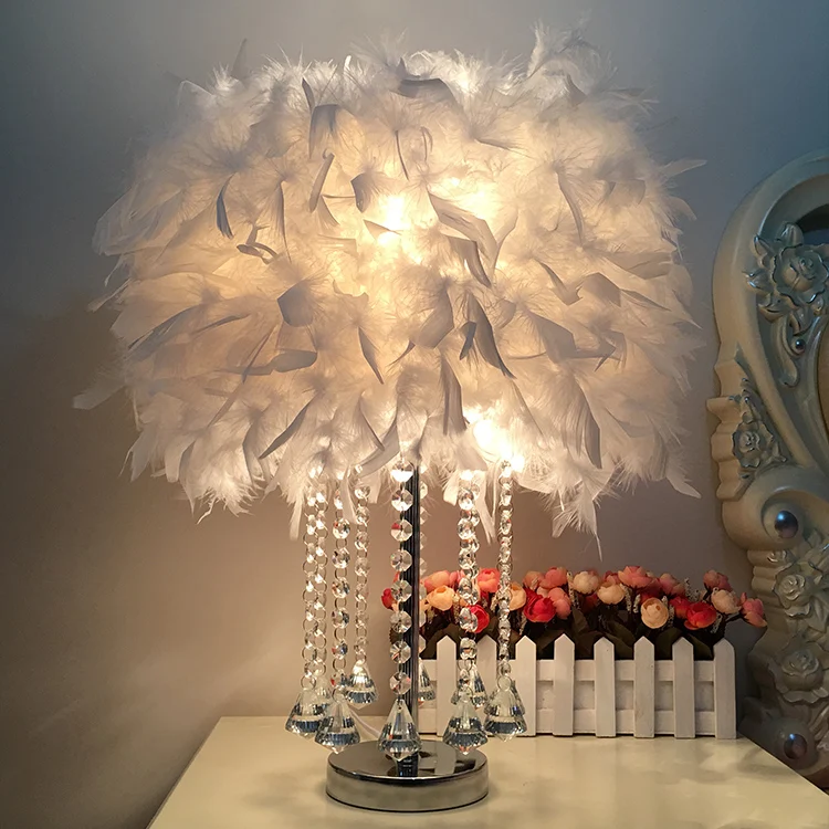 Креативная настольная лампа в средиземноморском стиле с хрустальными перьями, прикроватная лампа, украшение для дня рождения и свадьбы, ма...