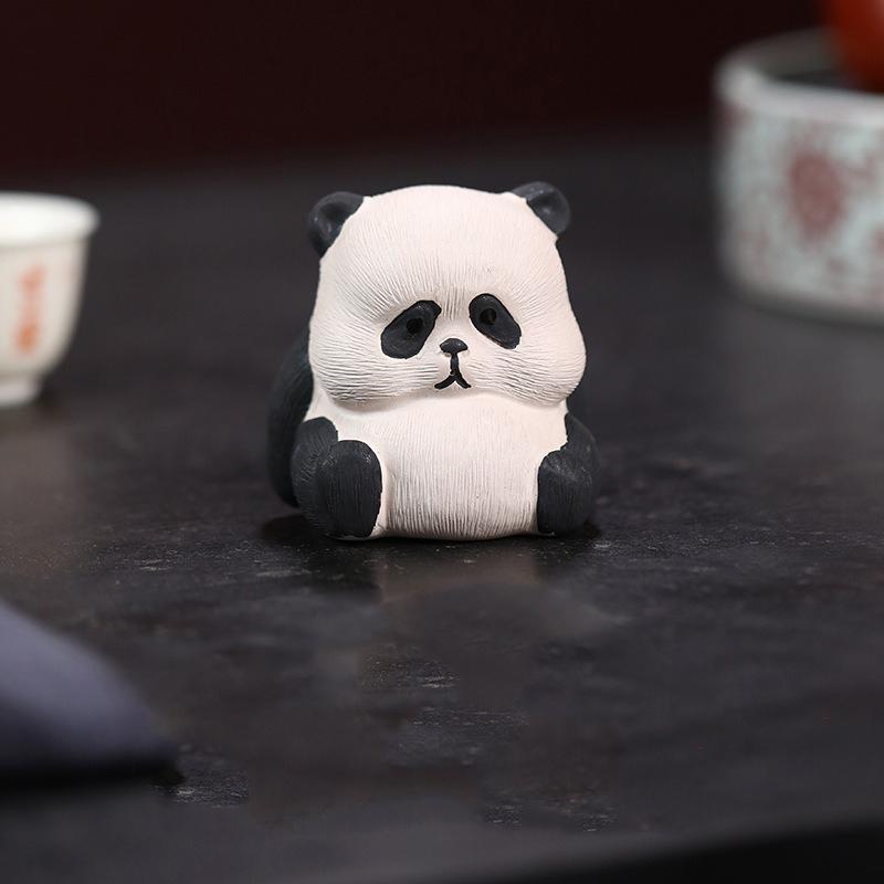 Креативная панда, чай, домашнее животное, глина ручной работы, окрашенная в фиолетовый песок, украшение для чайного стола, аксессуары для домашнего чайного сервиза, милые и питательные маленькие скульптуры Blessing белый