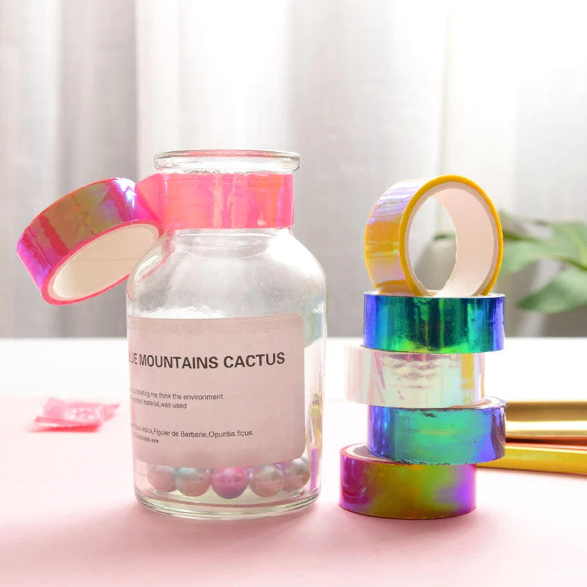 Креативная радужная пленка, блестящая цветная Маскировочная лента, полупрозрачные зеркальные декоративные ленты «сделай сам» для скрапбу...