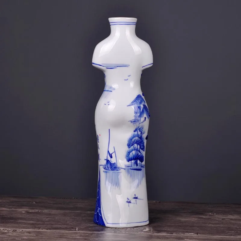 Креативная сине-белая фарфоровая керамическая ваза-Ципао для красоты, ремесла Цзиндэчжэнь, настольные цветочные вазы для гостиной, домашни...