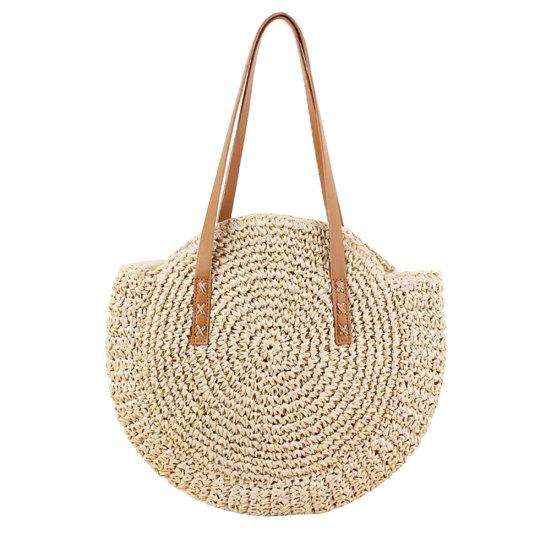 Креативная соломенная круглая женская повседневная дорожная пляжная сумка на одно плечо бежевый