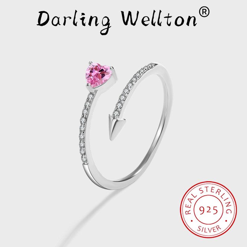 Креативное нерегулярное розовое кристаллическое кольцо в форме сердца со стрелкой и цирконом, парное кольцо для женщин, оригинальные ювелирные изделия на день Святого Валентина из стерлингового серебра adjustable розовый