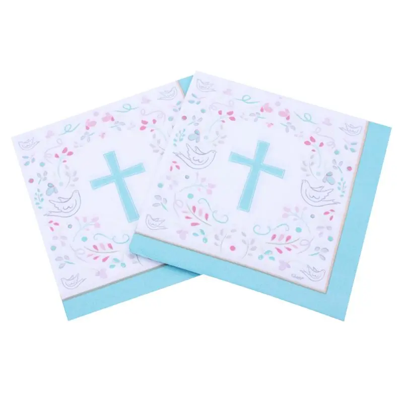 Креативные бумажные салфетки с голубым крестом для креативного мира, религиозное полотенце для рук для вечеривечерние Санта-причастия, тов...