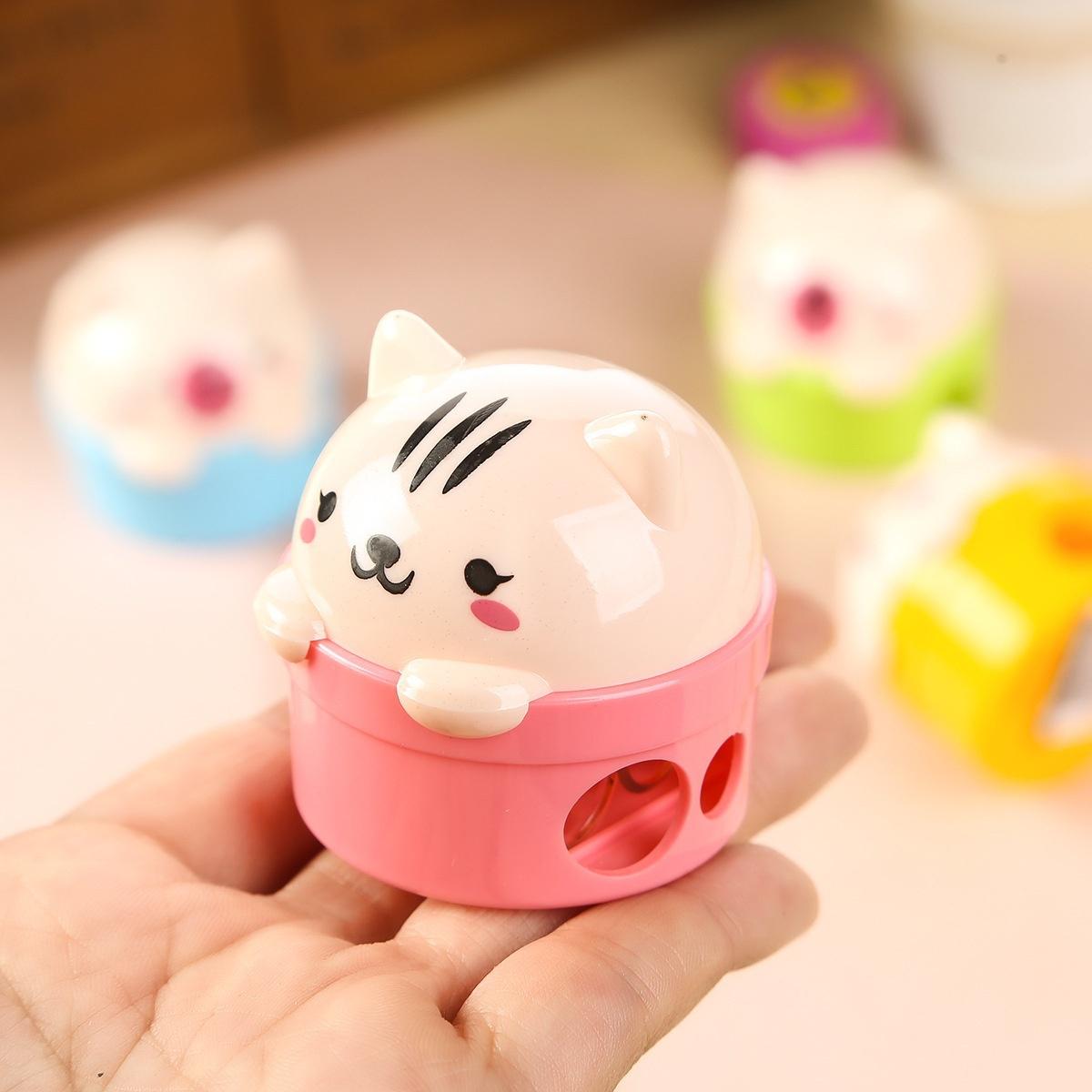 Креативные канцелярские товары, детская точилка для карандашей, милый мультяшный кот, точилка для карандашей с двойным отверстием 1Pcs