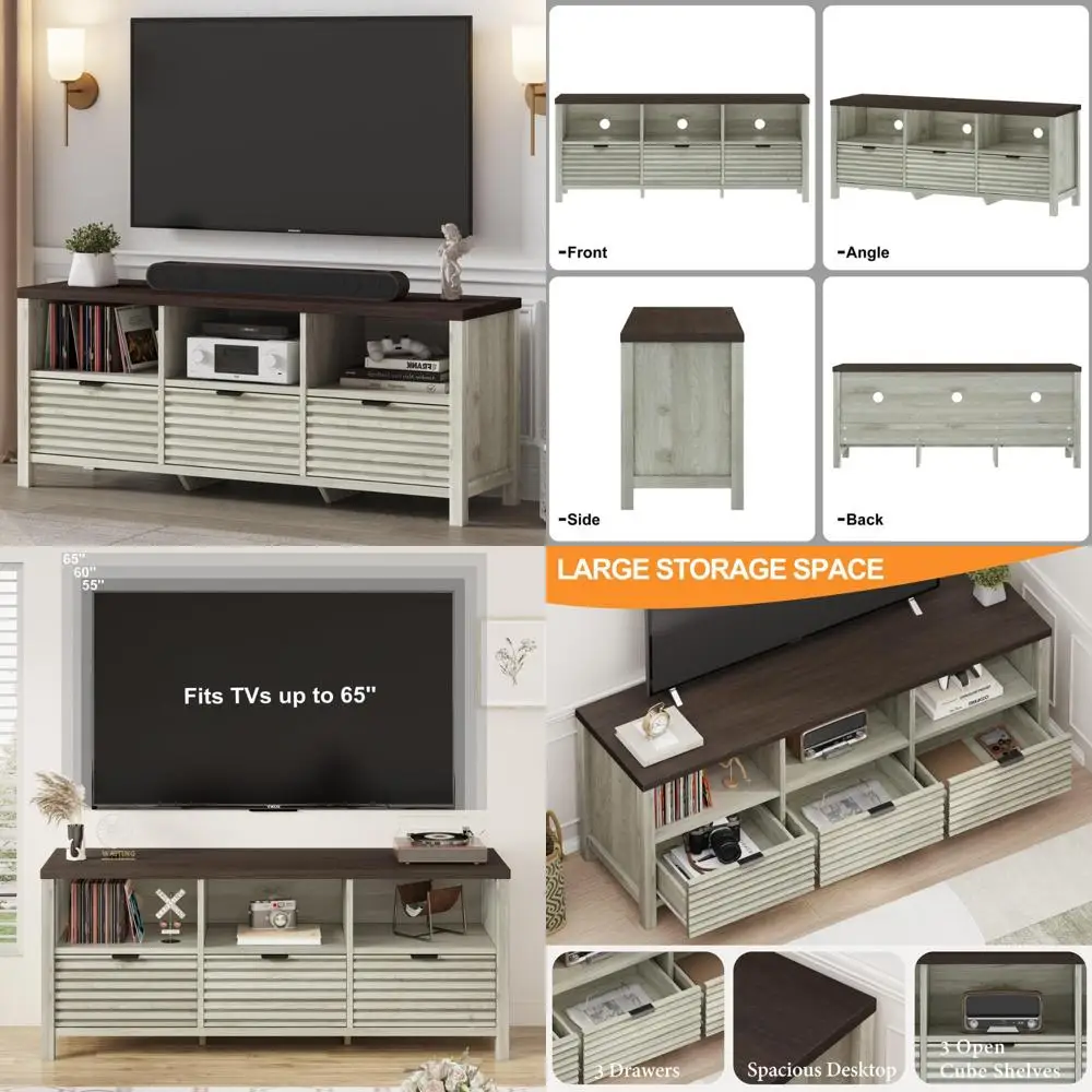 Modern Fluted TV Stand for 65, 55, and 50 TVs - Farmhouse Style Entertainment Center with Storage Drawers