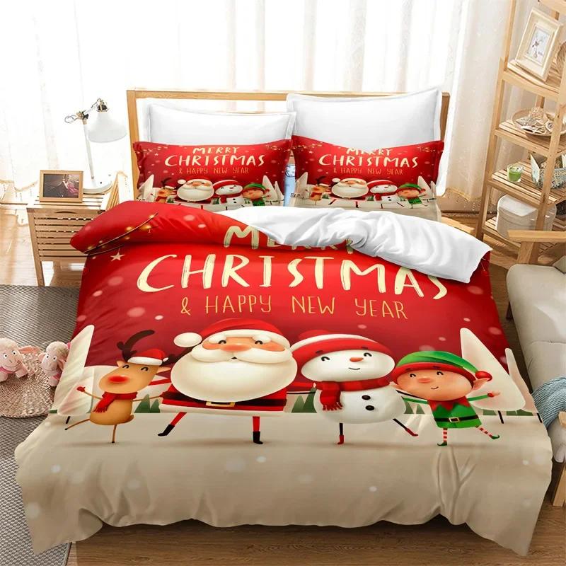 Креативный Рождественский Принт Комплект Постельного Белья 3D Печать Санта Клаус Лось Снежинки Принт Рождественской Елки 4 предмета Пододеяльник Для Подростков Взрослых EU Single135x200cm