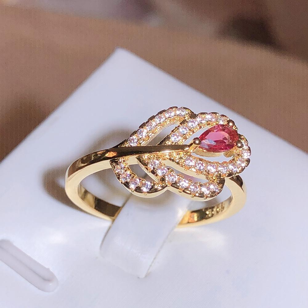 Креативный комплект колец с перьями золотого цвета и кольцом из красного циркона для женской моды, женские ювелирные изделия, вечерние кольца, ювелирные изделия, ювелирные изделия для коктейльной вечеринки, рождественский подарок 9 золотой